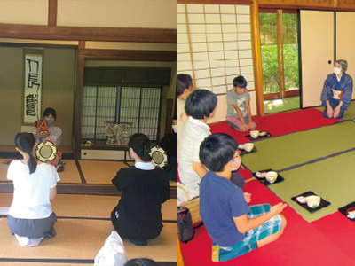 掛川城天守閣に隣接する施設を使用して、武家文化について学びましょう。第1回は二の丸茶室を使用して、茶道と能楽・謡の体験です。小間を使っての本格的な茶道の作法と、能の謡を通して武家が重んじた作法について体験します。第2回目は重要文化財である報徳社大講堂を使用して、能楽・小鼓、仕舞の体験を通して、体幹を用いた伝統的な身体の使い方を体験します。
